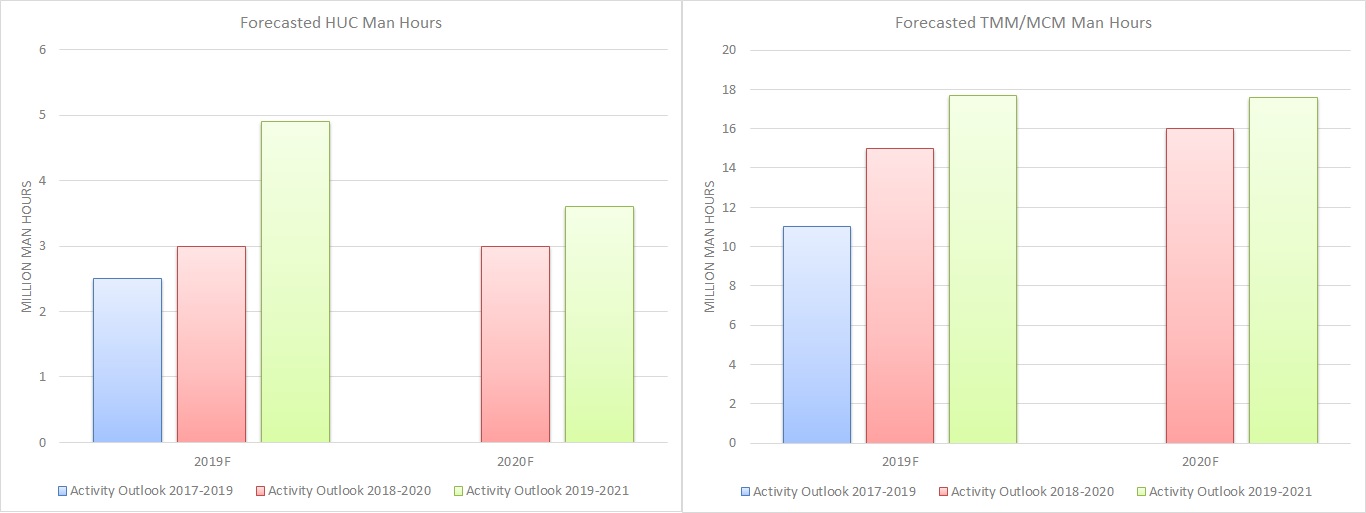 PETRONAS in its last three annual Activity Outlook reports have increasingly become more bullish for both HUC and TMM activities for 2019F and 2020F. It appears from the most recent (and likely most accurate) Activity Outlook, PETRONAS expects TMM/MCM man hours to remain constant at above 17m whilst HUC man hours will peak in 2019 with 4.9m man hours before normalising to 3.6m man hours.