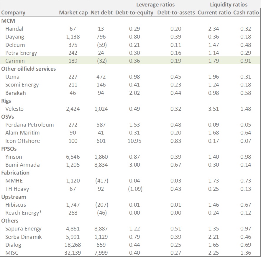Relative to the majority of domestic oil & gas companies, Carimin’s balance sheet appears healthy. As at 31st March 2019, Carimin had a debt-to-equity ratio of 0.36x. It is in a net cash position of RM32m with healthy current and cash ratios of 1.79x and 0.91x, respectively.