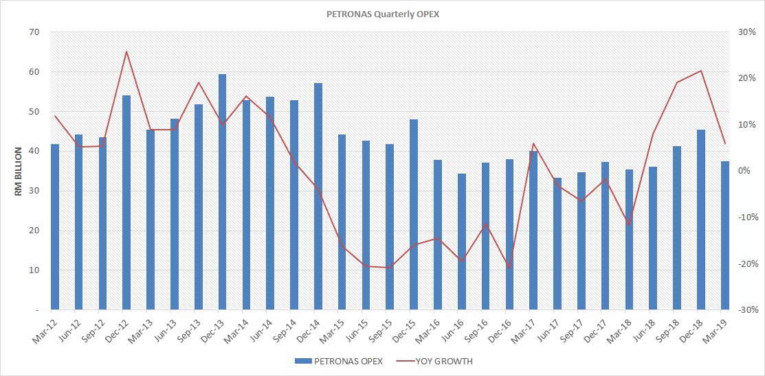 The MCM contract value was not specified in the announcement, but estimates suggest each package could be worth up to RM1b, which translates to roughly RM200m revenue per year. Barring a collapse in crude oil prices, we opine that activity levels under the package will be high in the near term as PETRONAS has been deferring or doing minimal maintenance works since 2015. This is imperitive in order to ensure the sustainability of upstream production. PETRONAS has been cutting back on opex since the end of 2014 and it has taken nearly four years for quarterly opex to exhibit y-o-y growth. Simply put, we are at the beginning of an opex upcycle.