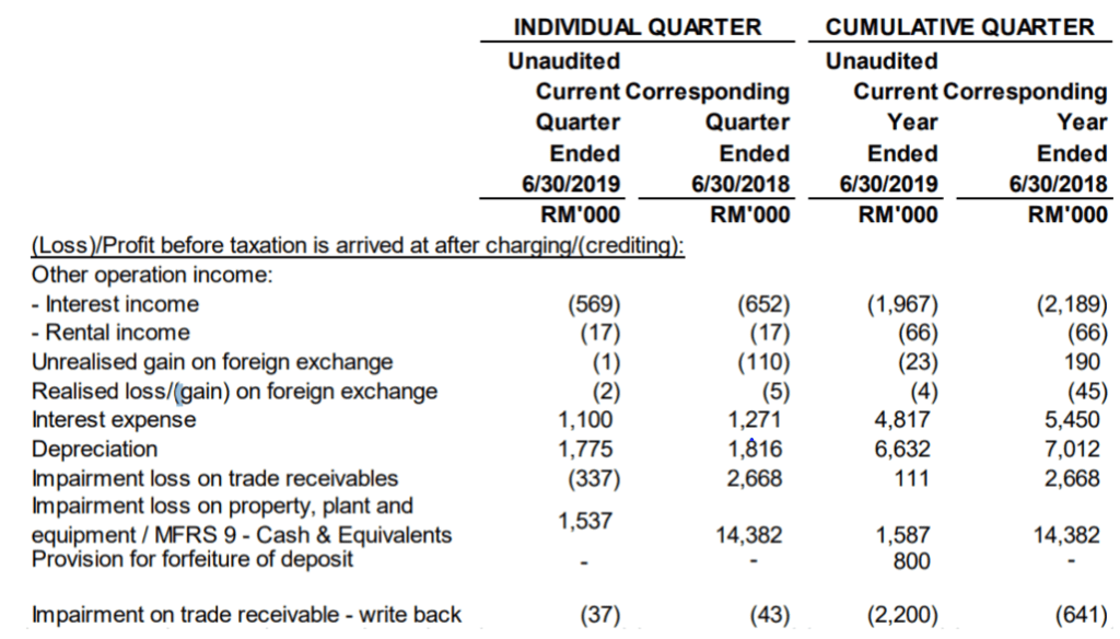 After stripping out the following non-core items: 1) unrealised gain on forex, 2) realised gain on forex, 3) writebacks on impairment loss on trade receivables, and 4) impairment loss on property, plant and equipment, Carimin’s core earnings come in at RM10.9m.